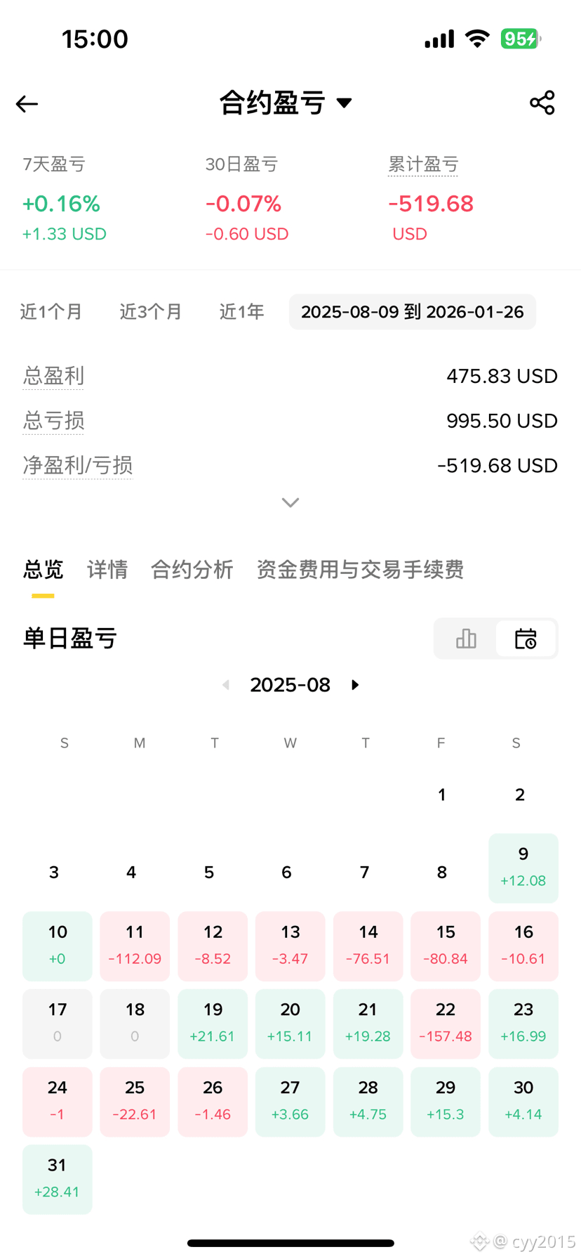 但这根本不是交易,是赌博。这两个月里,我经历了无数次这种心理博弈。每次亏损都不多,几十U,最多一次一百多U。但钝刀子割肉最痛,回头一算,不知不觉竟然已经送出去了500U。