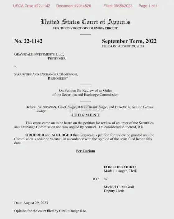 Conform documentelor instanței, un comitet de apel format din trei judecători din Washington a anulat decizia Comisiei pentru Valori Mobiliare și Burse (SEC) de a bloca ETF-ul Grayscale. Instanța a declarat că „respingerea propunerii Grayscale a fost arbitrară și capricioasă, deoarece SEC nu a reușit să explice tratamentul diferit aplicat produselor similare”.