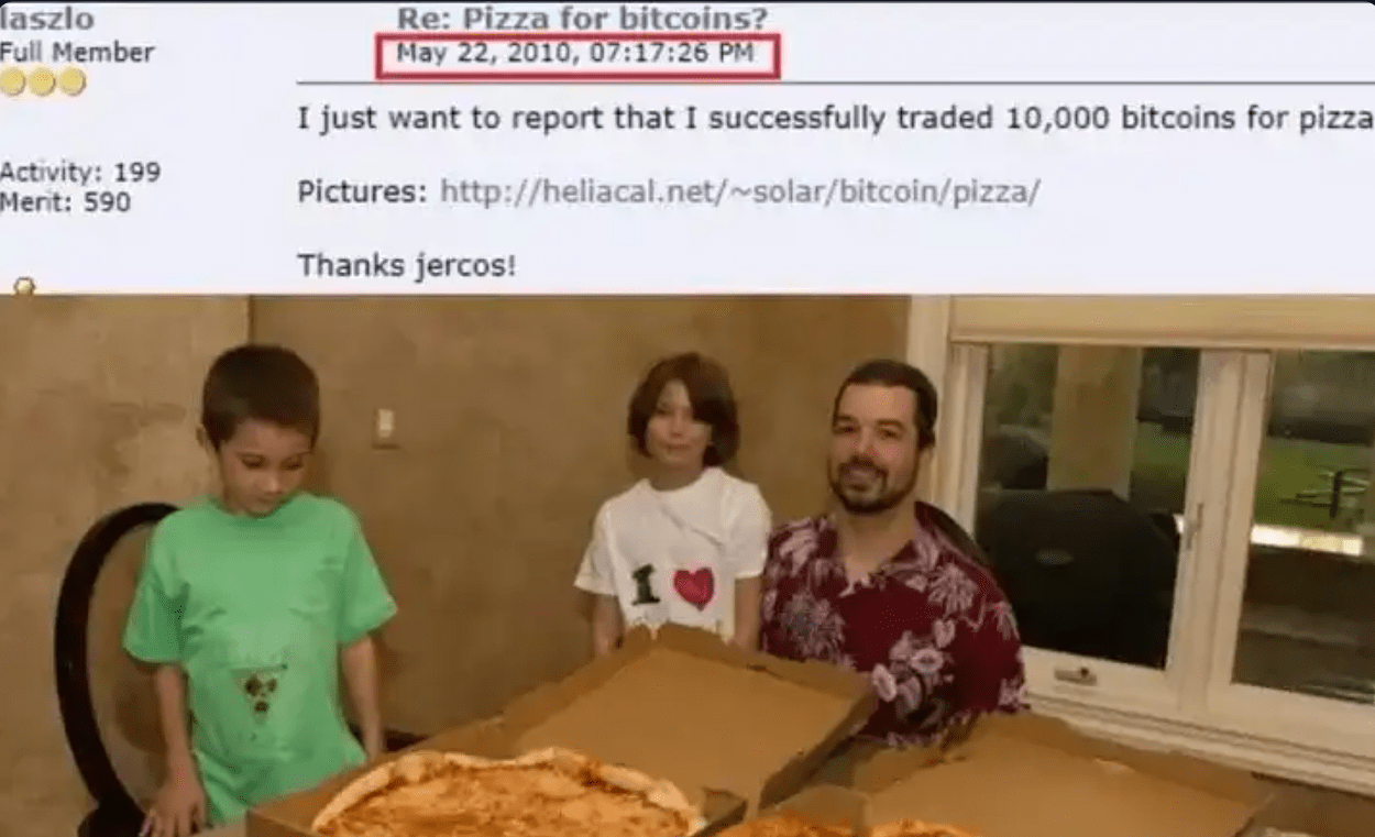 Într-o noapte din mai 2010, un programator înfometat a schimbat 10.000 de Bitcoin pentru două pizza în valoare de 30 de dolari fiecare, oferind Bitcoin-ului primul său preț - 0,003 dolari. Acest protocol invizibil și intangibil a dobândit astfel o valoare reală, ducând la o piață ascendentă plină de povești despre îmbogățire instantanee și ascensiunea mineritului de criptomonede.