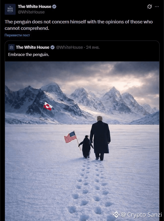 The White House posted a TikTok and an image on X featuring a penguin and the Greenland flag.