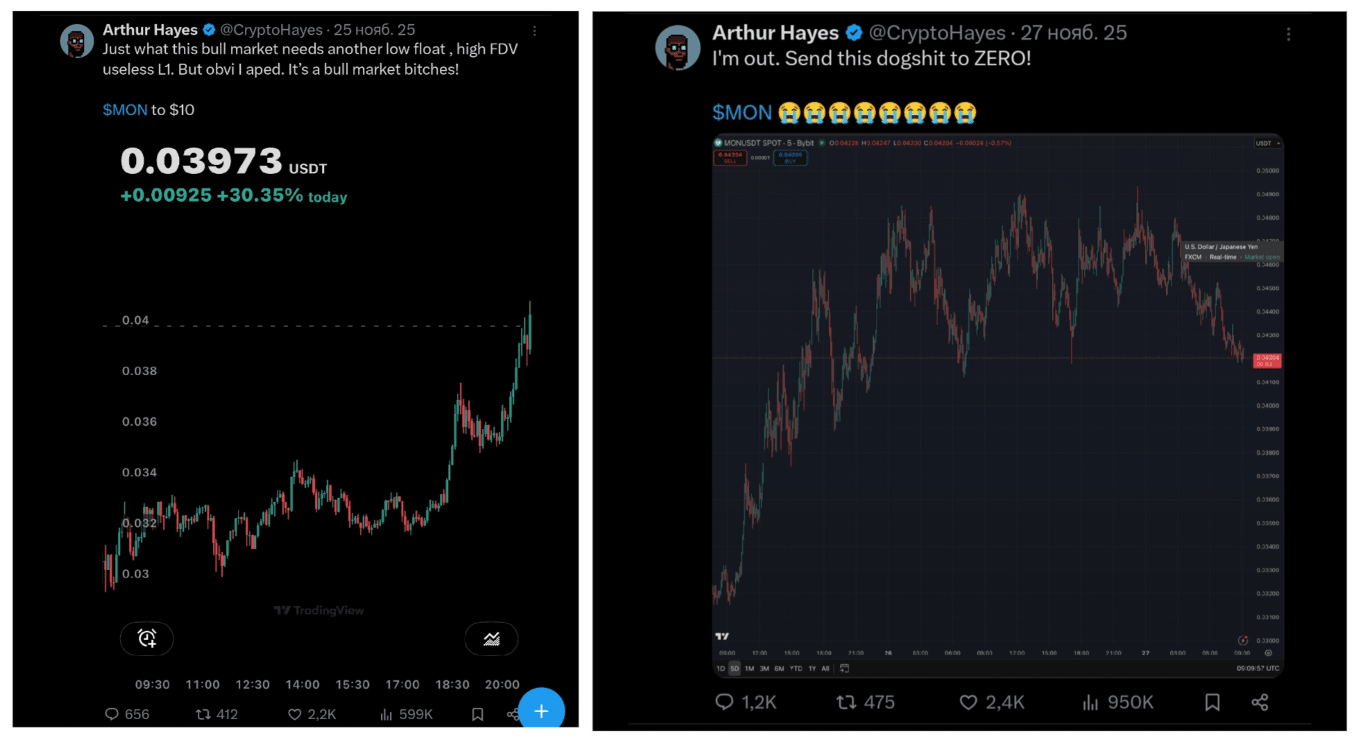 Așa că i se întâmplă bipolaritatea😂 Mai întâi postează că MON va zbura la 10💰 și în aceeași zi strigă: „Plec. Trimiteți asta la zero” O figură importantă, sunt bani, și vrea să-i înmulțească😂