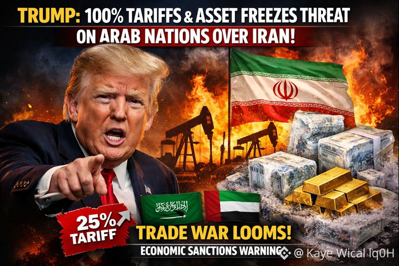 There isn’t clear, verified reporting yet on a 100% tariff or asset freezes specifically targeting Arab nations over Iran; most reliable news focuses on the roughly 25% tariff threat on countries doing business with Iran as part of broader U.S. pressure.