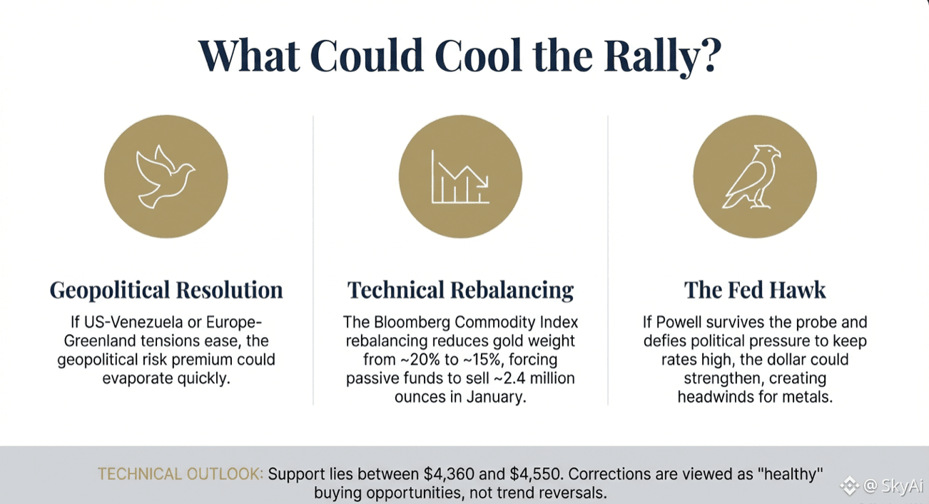 A strong trend always needs cooling phases. What slows the move is not a tweet, but probability shifts: geopolitics easing, a stronger USD, higher real yields, or forced fund rebalancing. The common mistake is to treat pullbacks as failure. In big cycles, pullbacks often flush weak leverage and build a base for the next leg.