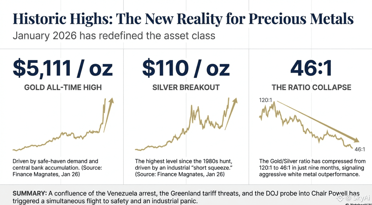 The most important signal here is not the gold high or the silver level, it is the Gold/Silver ratio. Dropping from 120:1 to 46:1 tells you silver is being repriced as its own thesis, no longer just a shadow of gold. When the ratio moves this fast, two things usually happen: the industrial value of silver gets re-rated, and speculative flow starts chasing real supply stress.