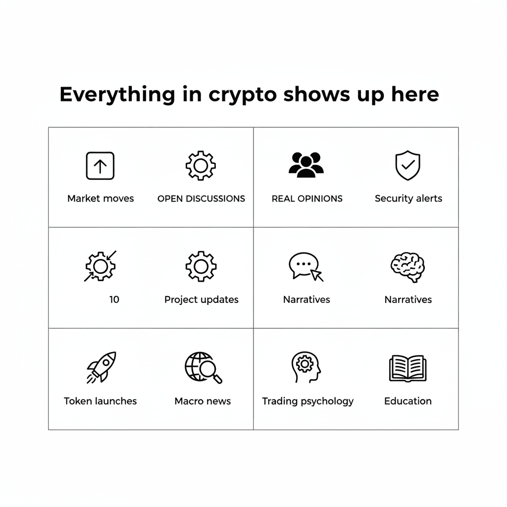 Este mai mult ca o stradă crypto live—deschisă, zgomotoasă într-un mod bun, plină de oameni reali, opinii reale și actualizări reale care se întâmplă în același timp. De fiecare dată când o deschid, simt că pășesc în locul unde crypto este de fapt discutat corespunzător, nu doar postat.