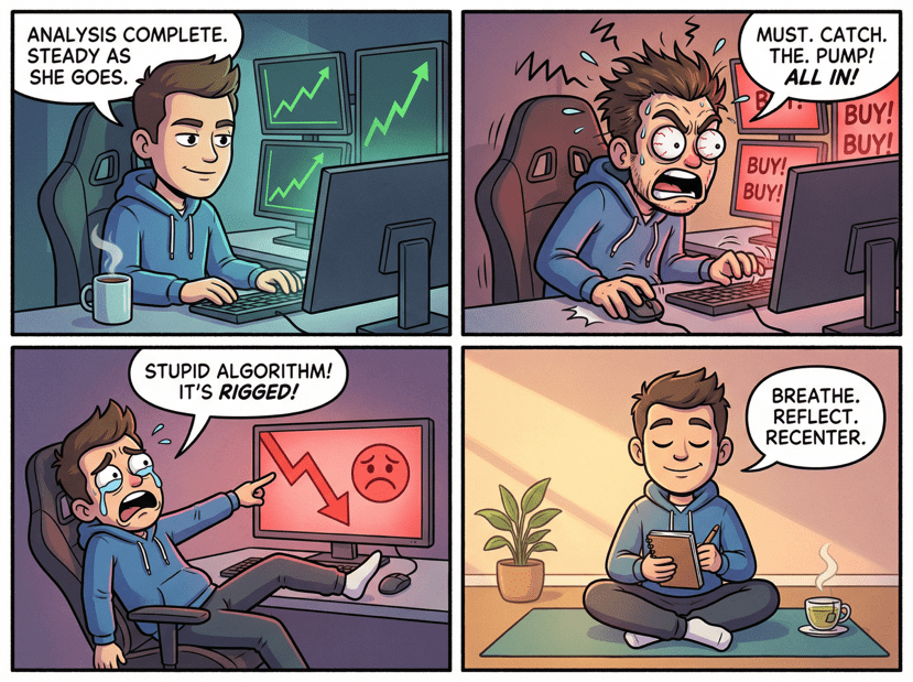 În concluzie, declinurile în tranzacționare sunt rareori tehnice—sunt mentale. Recunoașterea modelelor de tranzacționare emoțională, asumarea responsabilității pentru rezultate și menținerea disciplinei sunt abilități fundamentale. Mentalitatea ta nu este doar o parte a jocului—ci este jocul.