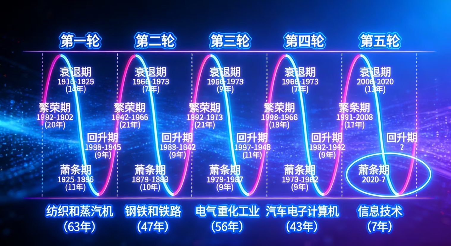 多数宏观分析认为,2025年是第五次康波萧条期的最后一年或触底年,2026年开始逐步脱离底部。