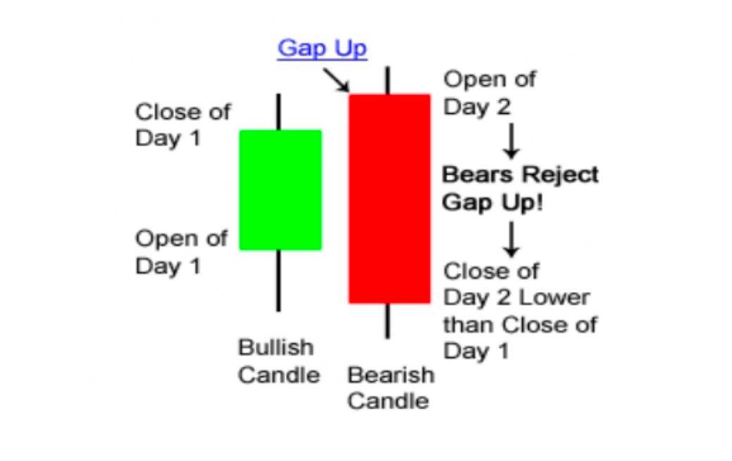 La fel ca modelul Bullish Engulfing, acest model este compus din două lumânări. Prima lumânare este o lumânare bullish mică, care poate fi numită și lumânare bullish mică. Este de culoare verde. A doua lumânare este o lumânare bearish lungă, care este de culoare roșie. Este numită o bearish candle.