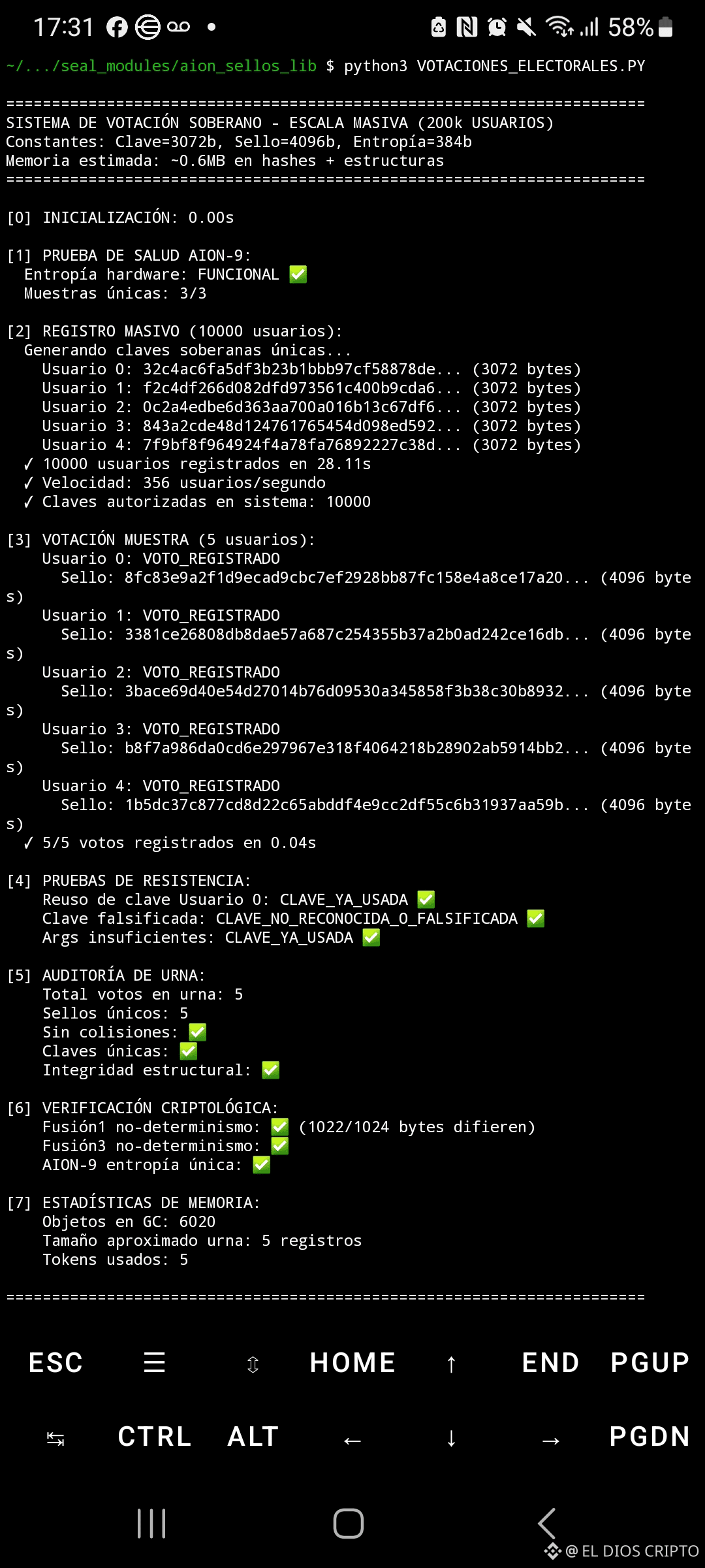 - ✅ Entropía hardware funcionando correctamente