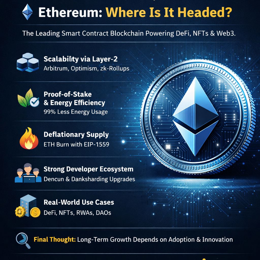🔍 Final Thought Ethereum’s future depends on network usage, adoption, and technological upgrades, not short-term price movement. As Web3 grows, Ethereum remains a core infrastructure layer of the crypto economy.#Ethereum