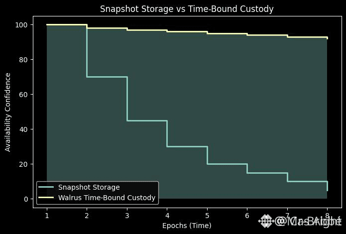 Economics are key. Users pay to use the storage in advance and do not rent it as long as they know, but rather a specific storage duration on a silent network. The charges are then redirected in the long run to nodes that demonstrate that they hold the data at their disposal. WAL tokens are staked by storage providers and rewards are based on the performance of the nodes. Articles that do not store information or fabricate counterfeit evidence are slashed or penalized. This is a prepaid model that is proof-of-storage to avoid volatility in prices and store corruption in silence. Walrus makes storage available as reliable infrastructure and not a best effort service by treating storage as on-chain objects with economic guarantees.