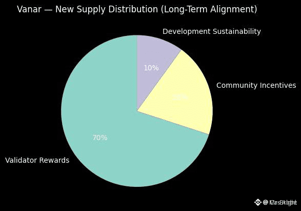 Vanar limits its provision to 2.4billion $VANRY . Fifty percent of the supply went into circulation as a one-to-one migration of the holders of the previous token at launch. The remainder is paid out over a period in twenty years and is divided as follows: