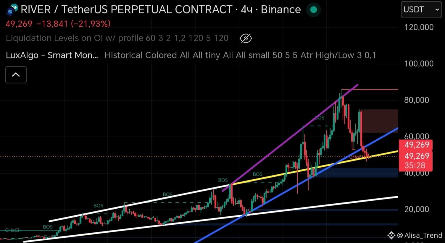 Самая важная линия, это нижняя белая, пробив ее, мы почти теряем все надежды на рост😔