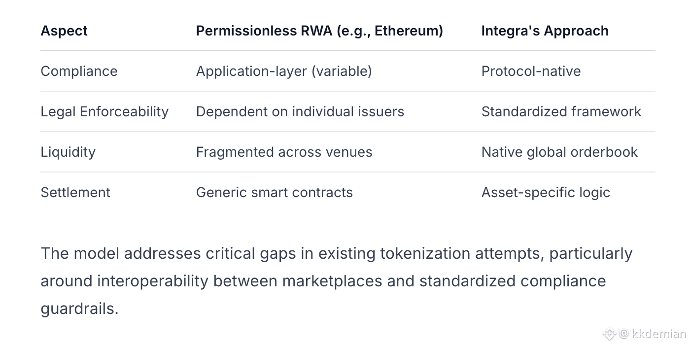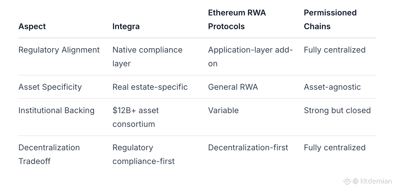 Positioning: Integra explicitly positions as a real estate-specific settlement layer rather than a general RWA platform. This vertical focus is evident in their native dApp strategy and consortium composition.