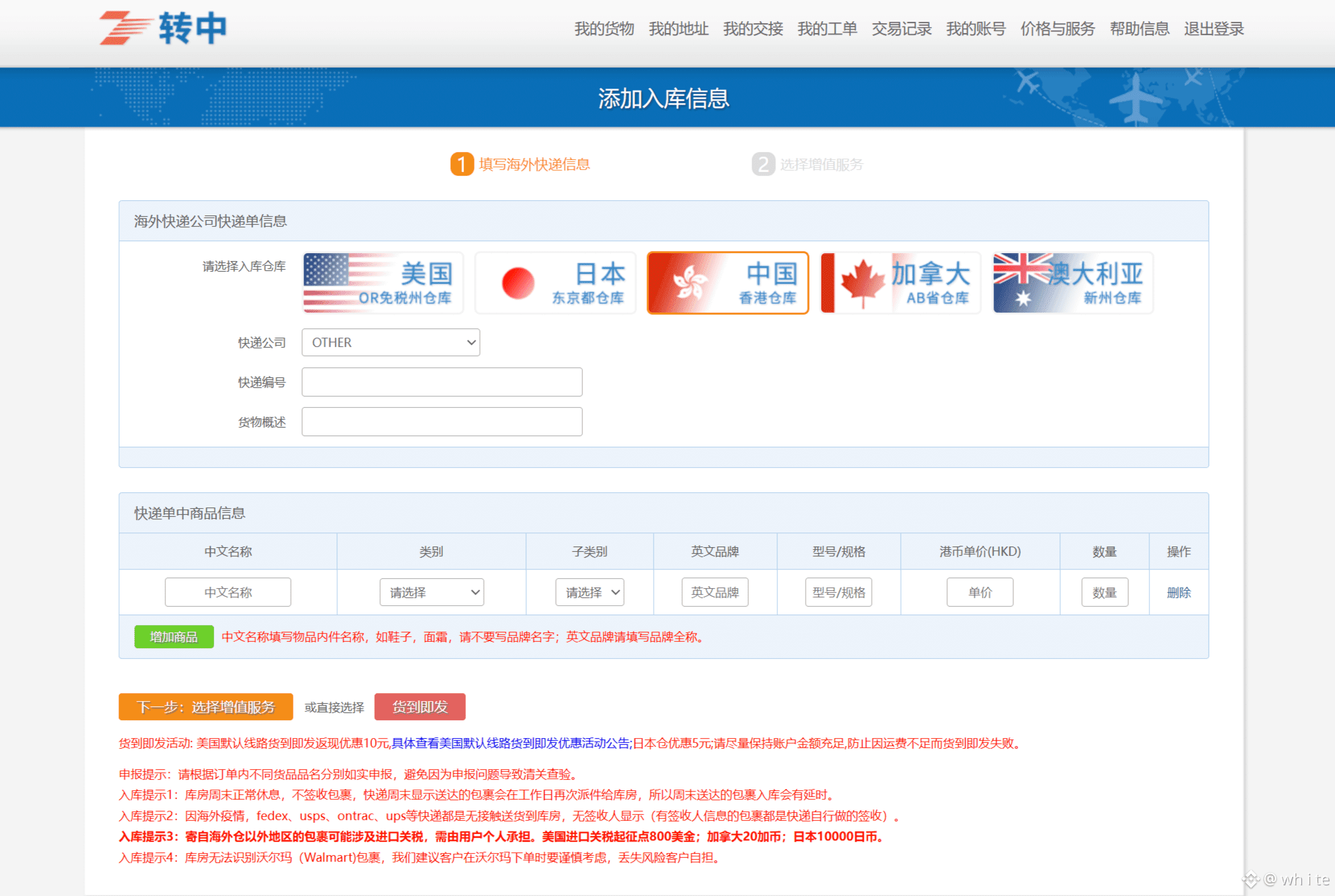 8.等待收货。货物到达仓库之后选择出库,然后转寄到你的所在地即可。