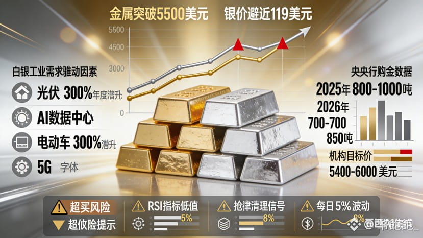 结合最新数据和主流机构观点,复盘一下当前情况。核心判断:短期有过热和“过度扩张”风险,洗盘大概率还会来;但大趋势的结构性支撑(央行买盘 + 亚洲实物需求 + 白银工业短缺)还没明显逆转。更现实的路径是“继续冲高,但会伴随回调”。