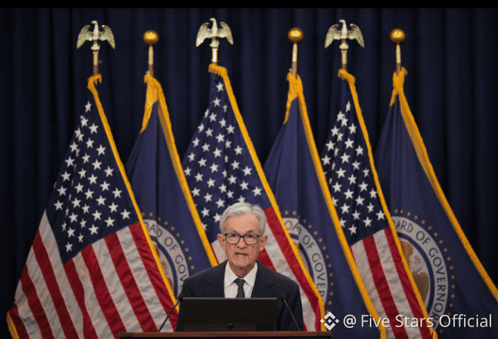 image_group{"query":["Federal Reserve interest rate decision press conference","Jerome Powell Federal Reserve speech","US Federal Reserve building Washington"]}