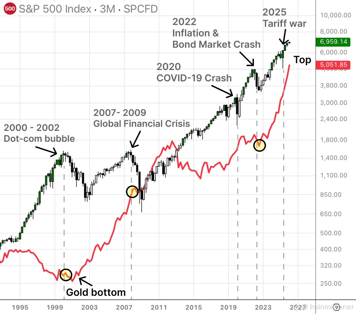 ➡️ Aurul a crescut după ce acțiunile erau deja în cădere.