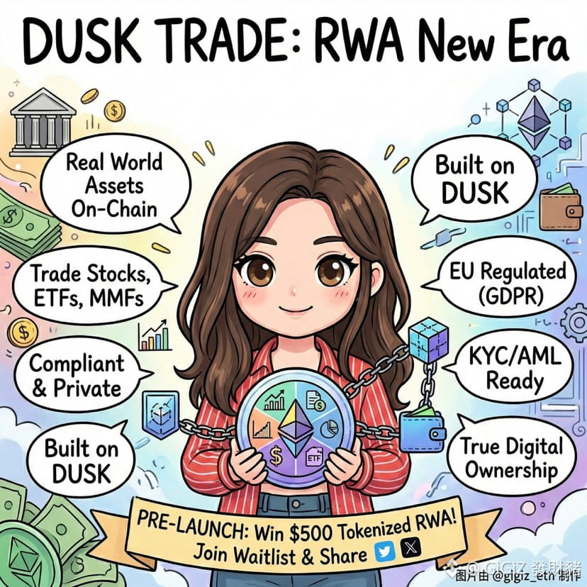 目前项目处于 PRE-LAUNCH 阶段,为了回馈早期参与者,加入候补名单并参与社交媒体分享(如在 X 上带标签发布信息),用户将有机会赢得价值高达 500 美元 的代币化 RWA 资产 #Dusk @Dusk #币安广场