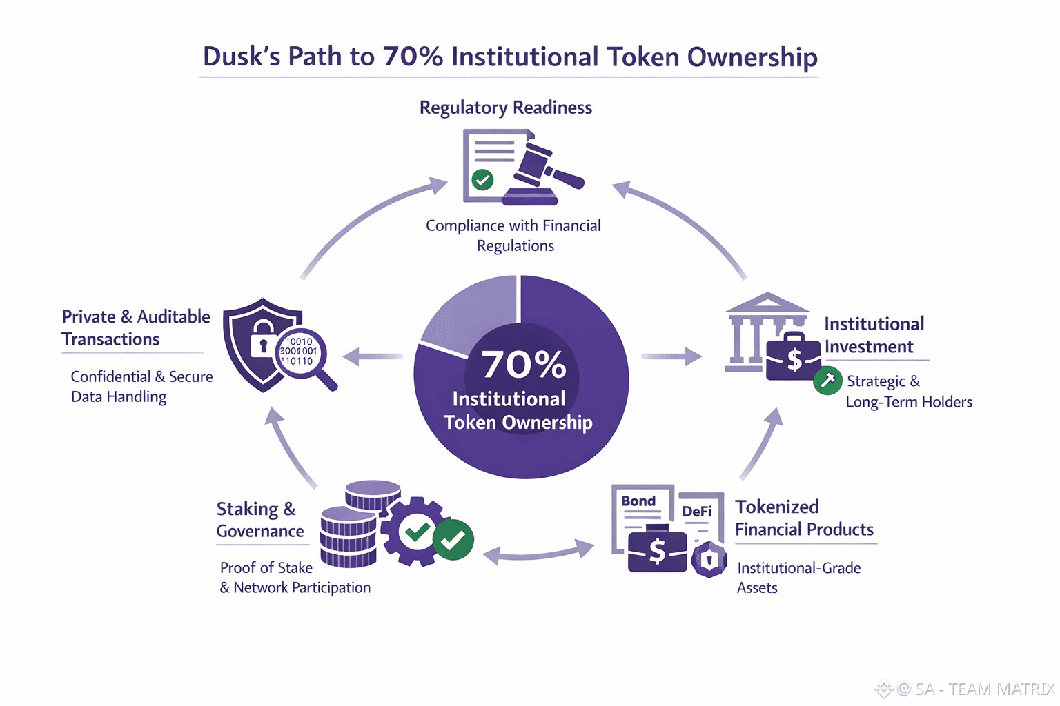 Reaching seventy percent institutional token ownership is not simply a metric of concentration. It signals a shift in network identity from experimental blockchain to financial market infrastructure. For Dusk this milestone represents trust earned through compliance focused design real world testing and a clear understanding of institutional needs. As adoption continues the network stands as a blueprint for how privacy focused blockchains can integrate with global finance without compromise.