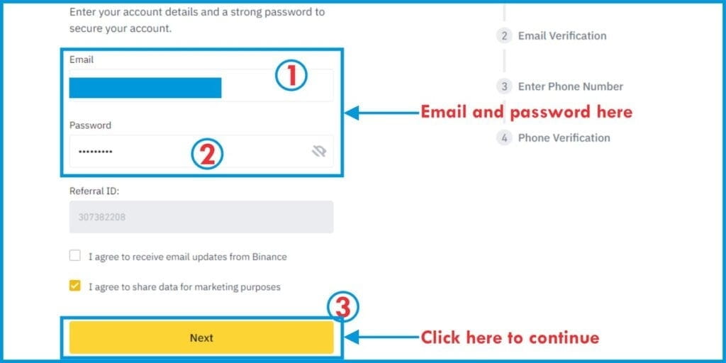 În cadrul acestui tutorial, ne vom concentra pe utilizarea e-mailului. Rețineți că, indiferent dacă folosiți telefonul sau e-mailul pentru a vă înscrie, veți adăuga totuși celălalt cont ulterior din motive de securitate.