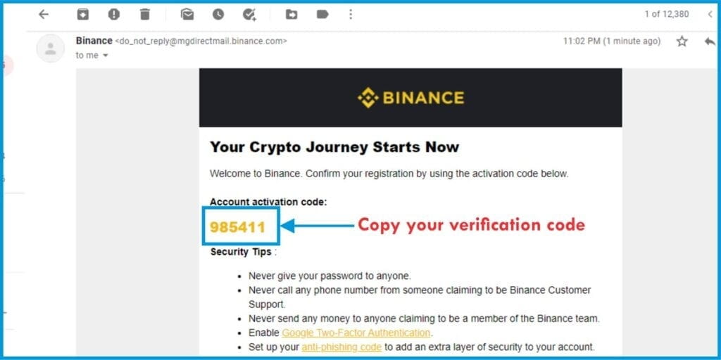 După aceea, trebuie să așteptați câteva minute sau ore pentru a primi un răspuns de la Binance prin e-mail.