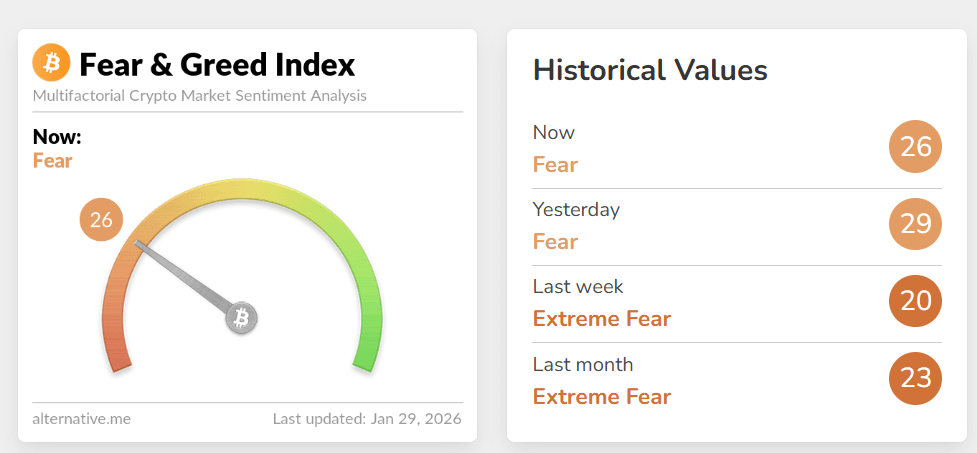 😨 Indicele fricii și lăcomiei a scăzut la 26 de puncte.