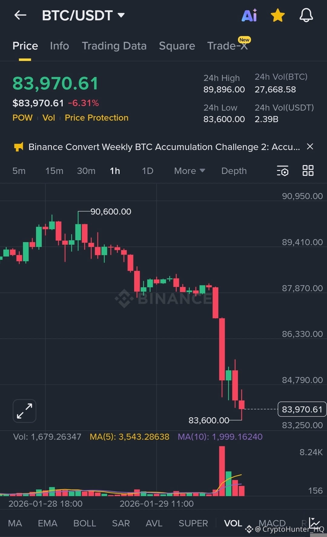 বিটকয়েন (BTC) গত কয়েক ঘণ্টায় এক বিশাল পতনের সম্মুখীন হয়েছে। $৯০,৬০০ লেভেল থেকে সরাসরি $৮৩,৬০০ লেভেলে নেমে আসা কোনো সাধারণ বিষয় নয়। অবাক করার মতো বিষয় হলো, মার্কেটে আপাতদৃষ্টিতে কোনো বড় নেতিবাচক খবর নেই, তবুও এই বিশাল সেল-অফ!