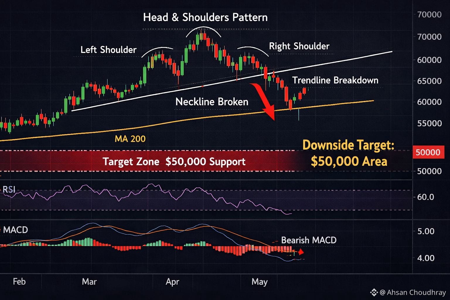 Bitcoinās recent price behavior has completed a textbook Head & Shoulders patternāoften a strong signal that bullish momentum has run out and sellers are taking control.