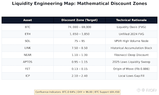 Waiting for true discount levels in altcoins is a mathematical necessity for rebalancing portfolios. During volatility, prices collapse through "liquidity voids" due to a lack of genuine buy orders. Based on Fair Value Gaps (FVG) and Volume Profile (VPVR), these are the primary sniper zones: