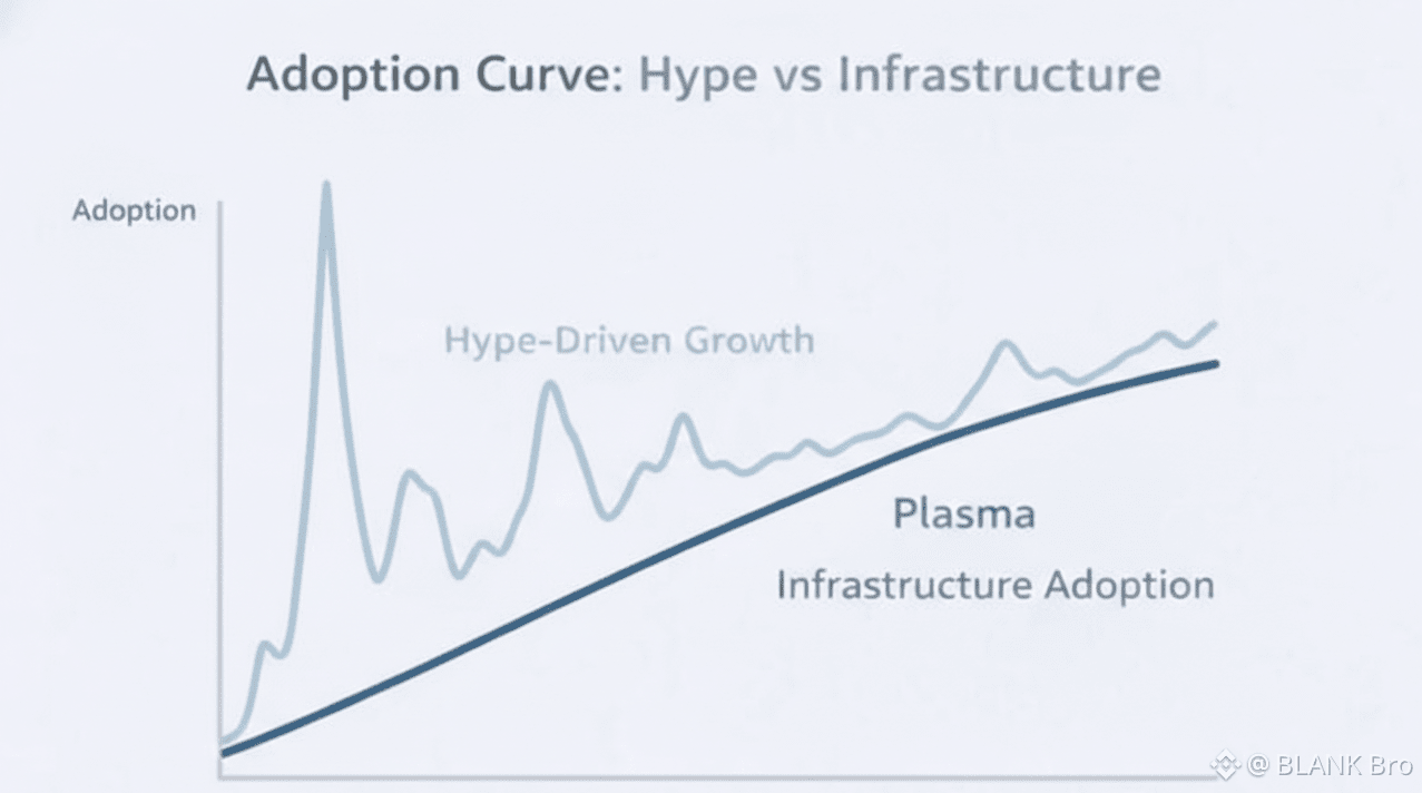 This creates a fundamentally different adoption curve. Plasma grows through silent integration, not loud marketing or speculative incentives. Treasury teams integrate it. Payroll systems adopt it. Enterprises build recurring workflows on it. Growth may appear slower than viral DeFi platforms, but it is stickier, more durable, and structurally sustainable.