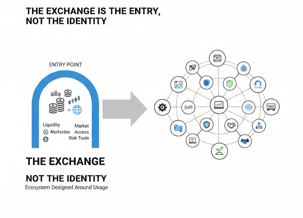 Dar schimbul nu mai reprezintă întreaga poveste. Binance l-a tratat ca o fundație — un loc unde utilizatorii intră în ecosistem — mai degrabă decât ca destinația finală. Această distincție contează. Platformele care depind doar de volum se luptă adesea atunci când ciclurile se schimbă. Ecosistemele concepute în jurul utilizării tind să reziste.