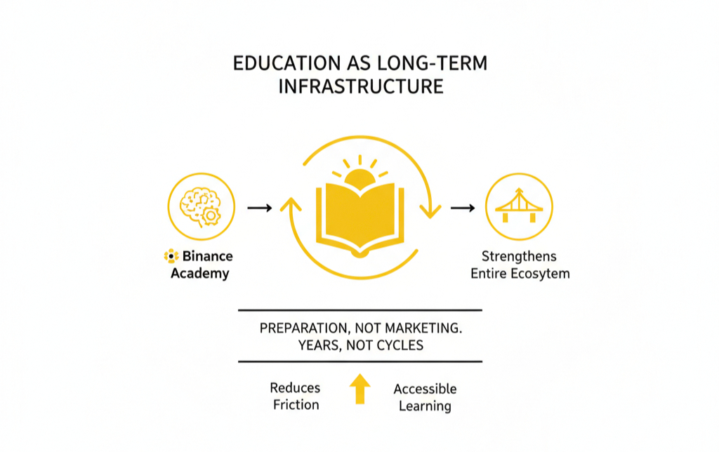 Un alt pilon subestimat este educația. Binance Academy nu generează volum, dar întărește întregul ecosistem. Într-o industrie în care complexitatea descurajează adesea participarea, învățarea accesibilă reduce fricțiunea.