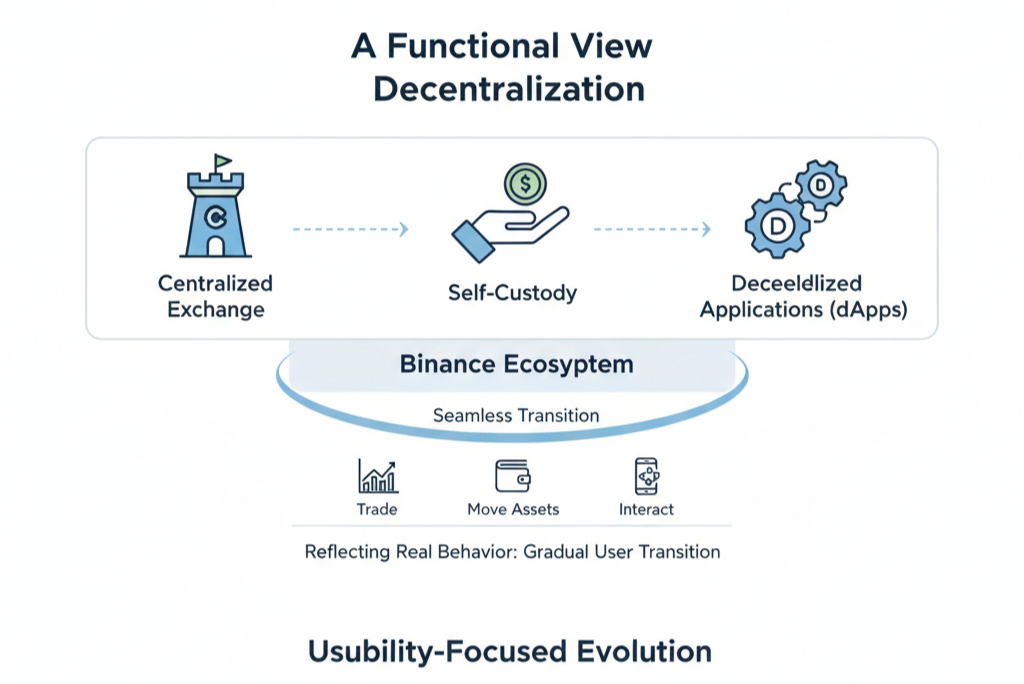 Unul dintre aspectele mai mature ale ecosistemului Binance este modul în care se raportează la descentralizare. În loc să o prezinte ca o alegere binară, Binance o integrează ca un strat.