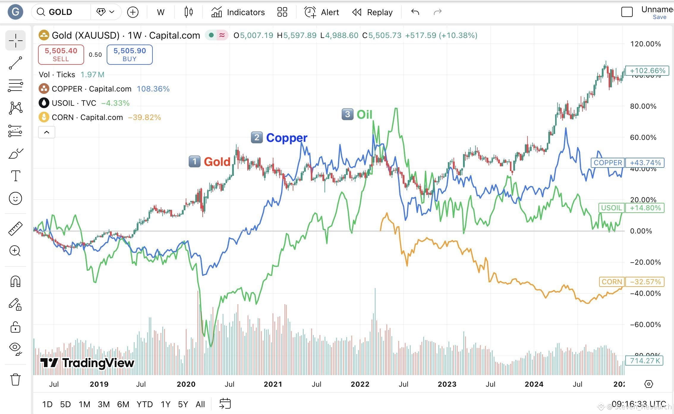 - Kim loại công nghiệp & Năng lượng Có tính đồng bộ cực cao với chu kỳ kinh tế toàn cầu (Global Business Cycle). Khi GDP thế giới tăng trưởng, hai nhóm này thường bùng nổ cùng nhau do nhu cầu sản xuất và vận tải.