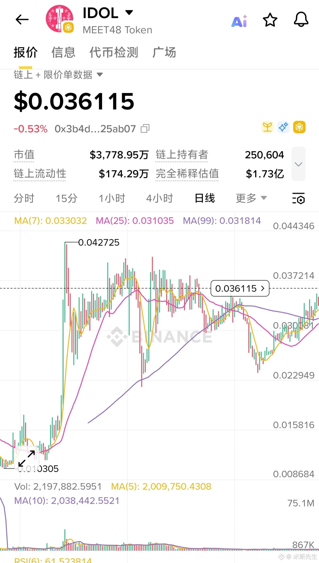 今年很多项目基本上处于开盘就跌到最后的状态,但有个项目的K线一直在稳步上升那就是MEET48的官方代币 $IDOL
