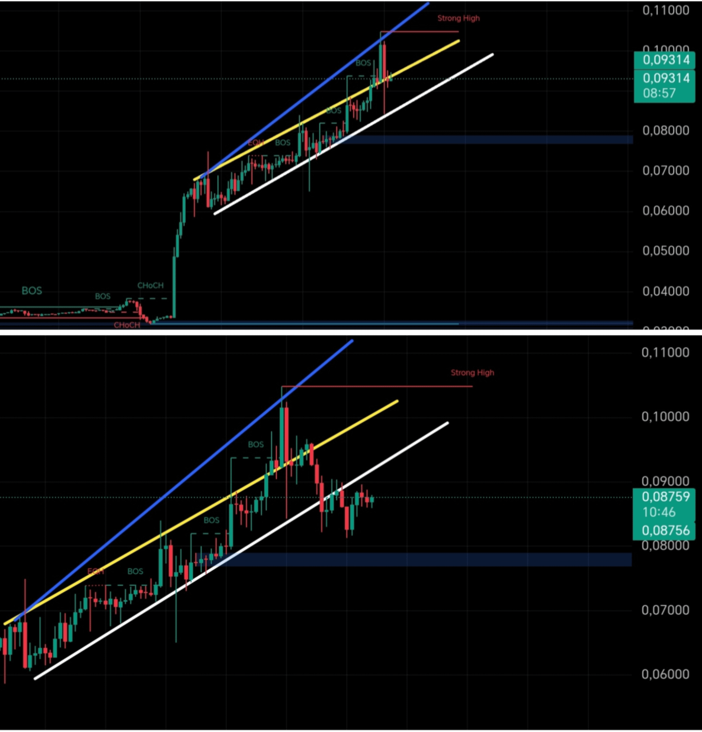 Punctele de suport sunt în cercuri galbene, și după cum vezi, în momentul actual nu se observă o schimbare a trendului 😔