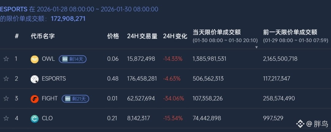 距离结束还有50分钟,注意增量,有的兄弟需要的最近2日的总交易量也标出来了$ESPORTS $CLO