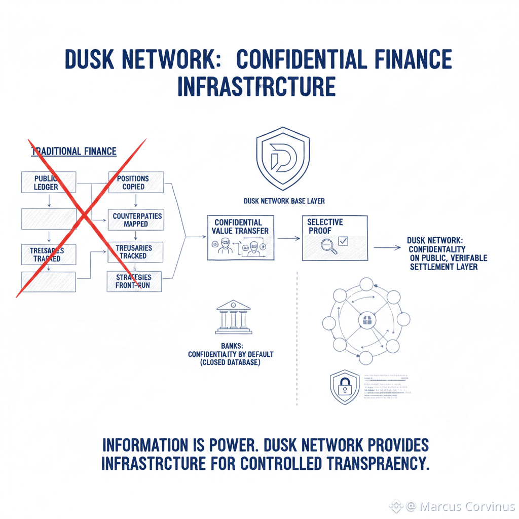 Dusk Network matters because in real finance, information is power, and uncontrolled transparency becomes a weapon; positions get copied, counterparties get mapped, treasuries get tracked, and strategies get front-run, so Dusk Network is trying to create a base layer where value can move with confidentiality while still allowing proof when proof is required.