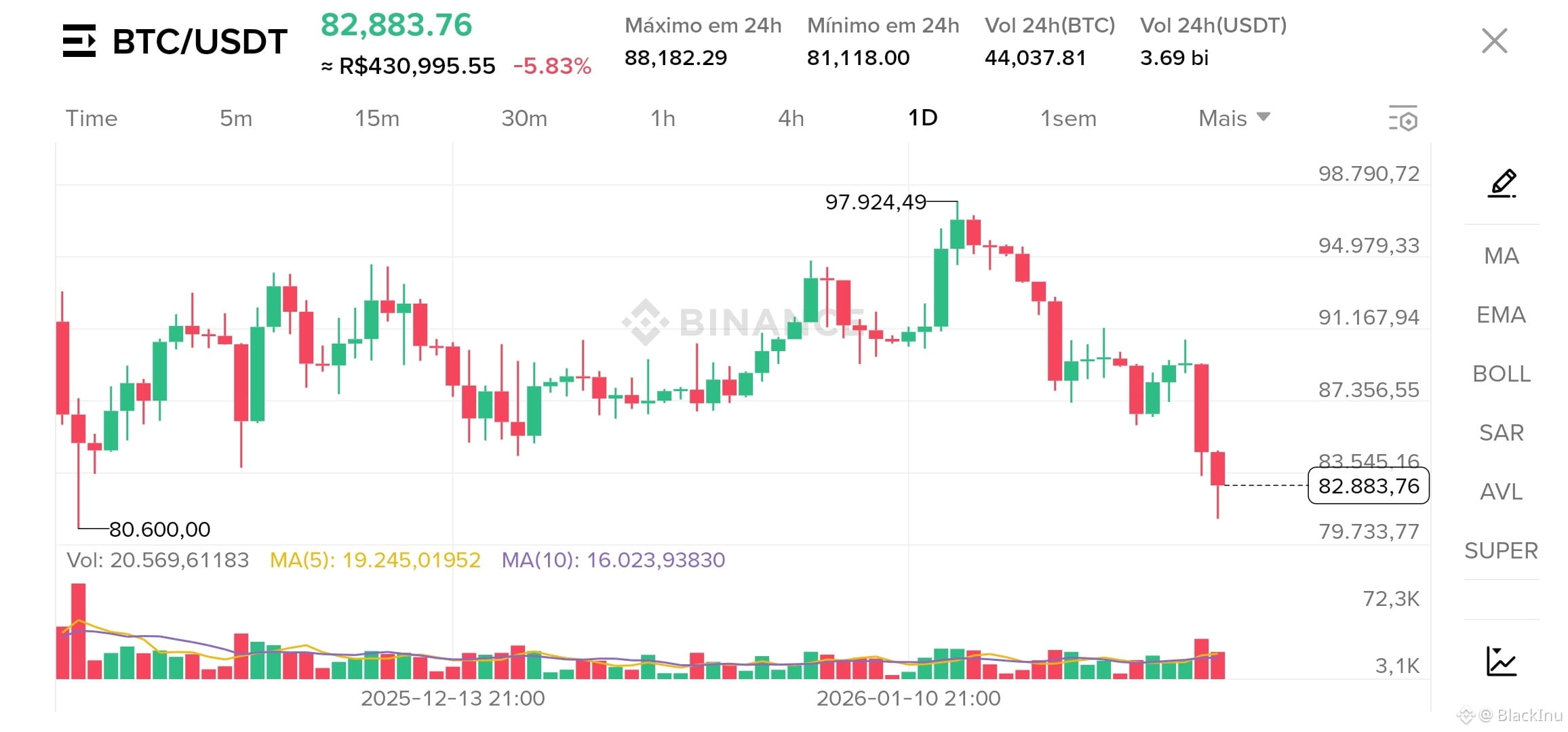 Volume (24h): 44,037.81 BTC / 3.69 Bilhões USDT