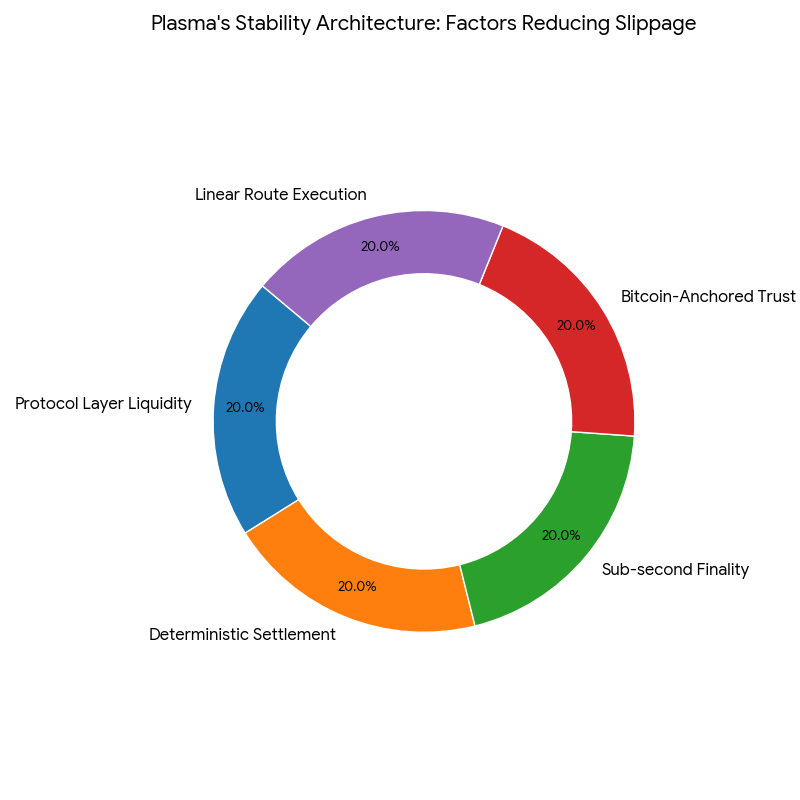 Plasma nu o ocolește, o reconfigurează. Lichiditatea se mișcă la nivelul protocolului, nu prin AMM externe sau poduri. Transferurile urmează căi de decontare deterministe, blocate pe cronologia PlasmaBFT. Finalitatea sub-secundă împiedică rutele să rămână suspendate, alunecarea se prăbușește.