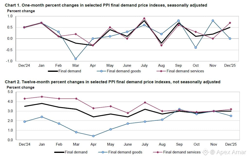 The latest economic data from the United States has just hit the wires, and it’s a "hotter-than-expected" report. The Producer Price Index (PPI) for December 2025 rose by 0.5%, significantly exceeding the market forecast of 0.2%.