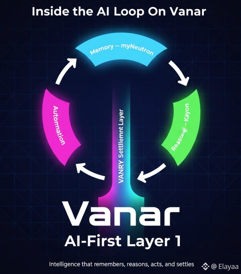 These three layers — memory, reasoning, and automation — form an internal loop. Memory informs reasoning. Reasoning shapes action. Action triggers settlement. Instead of intelligence living off-chain and only touching blockchain at the payment step, Vanar keeps more of that loop inside the system.