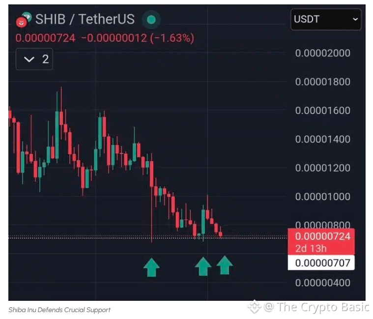 Shiba Inu is repeatedly defending a critical support level around $0.00000724.
