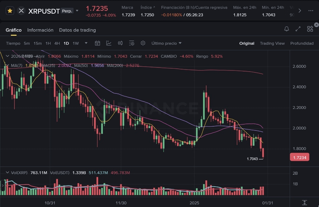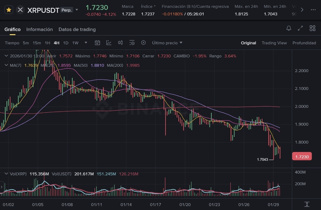 Ultima săptămână din ianuarie ne lasă un scenariu tehnic complex și agresiv pentru deținătorii de XRP. După ce a pierdut zone de suport care au funcționat timp de săptămâni, structura pieței s-a schimbat de la lateral la clar descendent pe termen scurt. Să analizăm datele reci pentru a înțelege contextul actual fără a cădea în panică.