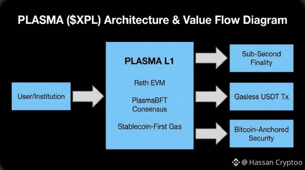 This architecture directly services PLASMA's primary use case, stablecoin transactions. Features like gasless USDT transfers and stablecoin first gas, where fees are paid in the stablecoin you are transacting with, are not afterthoughts, they are systemic requirements enabled by a fast, final consensus layer. When finality is sub second and costs are predictable, the chain behaves more like a financial network than a typical smart contract platform. It is targeting the mundane but colossal flow of value, not the speculative edge of DeFi. Analyzing the XPL token on CoinMarketCap and Binance Spot as of today shows a market focused on this utility. The token facilitates network security and governance within this streamlined ecosystem. Its value is tied to the throughput and adoption of stablecoin settlement, a metric fundamentally different from chains competing for generalized TVL.