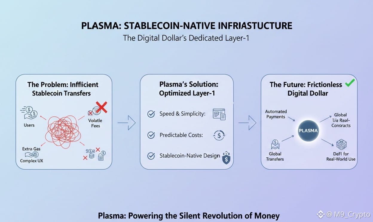 Most blockchains try to do everything at once. Payments, DeFi, NFTs, gaming, identity, and even abstract ideas like becoming a “world computer.” Plasma takes a different path. Instead of expanding horizontally, it narrows its focus around a single observation that most networks overlook: stablecoins have already become the digital dollar, but the infrastructure beneath them is still inefficient.