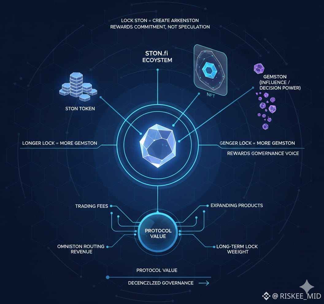 STON is more than a DEX token — it is the ownership and governance backbone of the STON.fi ecosystem. Carefully designed to convert protocol activity into long-term alignment, STON ties together trading fees, Omniston routing revenue, and governance in a single coherent system that privileges commitment over speculation. Below I unpack how the economic flows, the locking mechanics, and the governance primitives (ARKENSTON and GEMSTON) interact — and why that design matters for decentralization, stability, and real community stewardship.