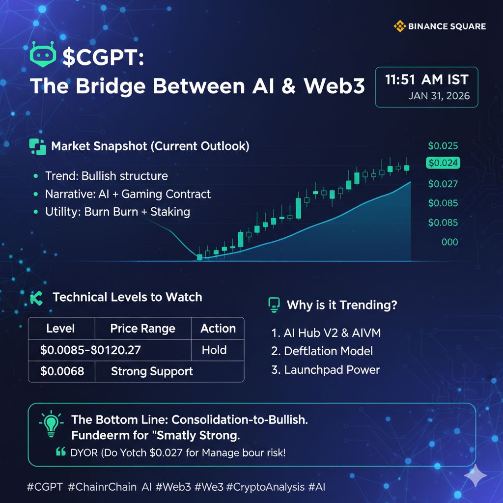 $CGPT is currently oversold on the daily RSI. While the price has taken a hit recently, the development activity is still high. It’s a "utility-first" token—meaning its value is tied to how many people use their AI tools. If AI continues to lead the 2026 tech narrative, CGPT is a primary candidate for a recovery.