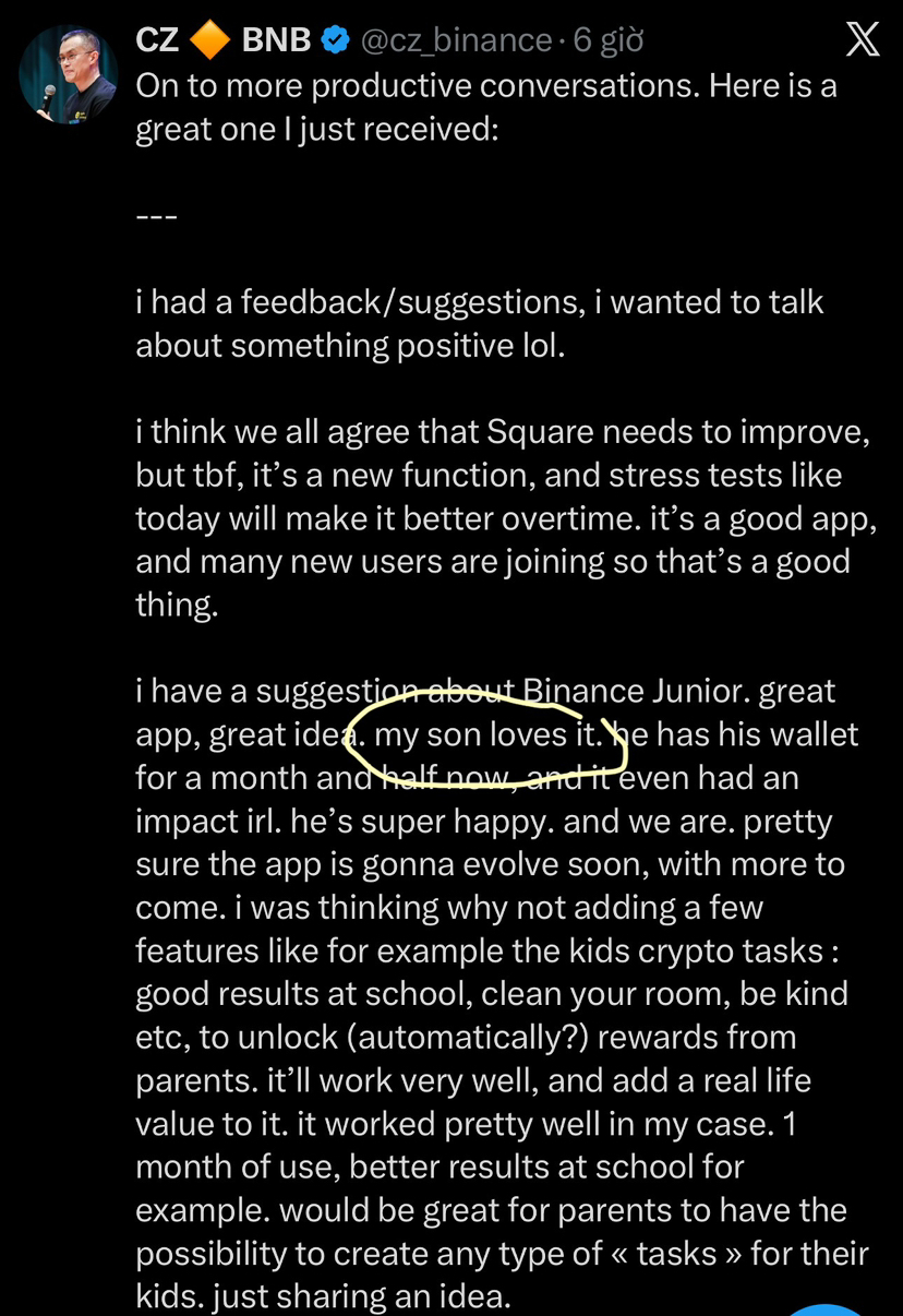 Când @CZ a menționat că fiul său folosește activ Binance Junior, nu a fost o flexare casuală sau o poveste de bine. A fost o rară privire în cum Binance însuși ar putea gândi despre următoarea decadă de adoptare.